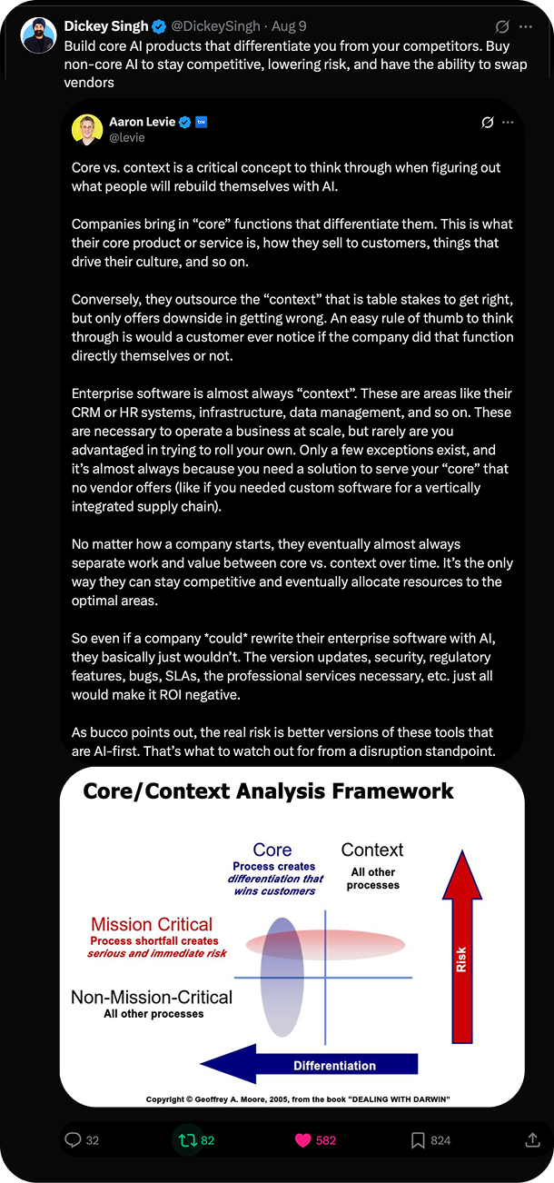 “Companies bring in ‘core’ functions that differentiate them… and outsource the ‘context’ that’s table stakes to get right.” — Aaron Levie